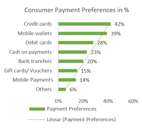 Mobile wallets, QR- code and UPI methods are the key players in changing the payment industry. The ease of payment and convenience were the highlighting factors.